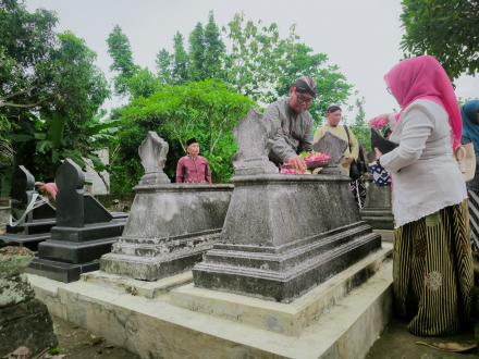 Titik pertama ziarah makam dan tabur bunga di Makam Kampung Petet, yaitu makam Alm. H. Muh. Chamim (Lurah pertama otonomi). Kemudian kedua di Makam Mertosanan Wetan yaitu makam Alm. H. M. Suhardi Sanani (Lurah kedua otonomi), Alm. Sastro Tinoyo (Lurah kelurahan lama Mertosanan), H.M. Djuwaeni (Carik pertama otonomi). Serta ketiga di Makam Balong Lor yaitu makam Alm. Mangun Suwarno (Lurah kelurahan lama Balong), Edi Gunawan (Kaur keuangan), Trisno Wiyarjo (Dukuh Banjardadap), Harjo Sukarto (Dukuh Balong Lor), R. Cipto Sugondo (Carik kelurahan lama Balong) dan Bapak Sriyono (Staff Kamituwo). Dalam kesempatan ini, rombongan ziarah turut mendoakan dan menabur bunga di makam para pendahulu tersebut.